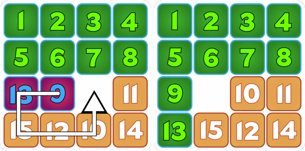 -Move tile 9 to be directly to the right of tile 13.