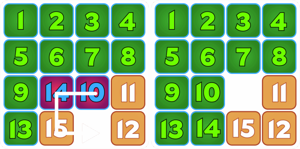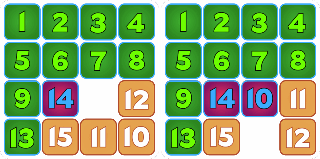 -Move tile 10 to be directly to the right of tile 14.